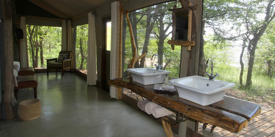 Solarenergie sorgt für Beleuchtung und Komfort, ohne die Umwelt negativ zu beeinflussen. Die Lounge und der Speisebereich befinden sich unter schattenspendenden Baumriesen und die Zimmer sind durch gut ausgetretene Elefantenpfade mit dem Hauptgebäude verbunden.