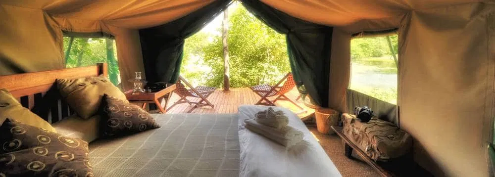 Die Quellen von Chitake Springs sind für das Überleben des Wilds im Süden des Parks äußerst wichtig, denn während der Trockenzeit führen die Flüsse kein Wasser. Das Wild kommt dann in der Nähe der Quellen zusammen, so dass die Tierbeobachtung auch bei Fußsafaris besonders gut ist. Diese finden unter der Leitung von professionellen Guides statt. Das Kanga Camp verfügt über sechs geräumige Meru-Zelte (Kuppelzelte) inmitten des Mana Pools Nationalparks. Jedes Zelt hat selbstverständlich einen eigenen Badbereich mit WC und einer Aussendusche. Jeden Abend wird heißes Wasser in den Canvas Eimer gefüllt für die heiße Dusche nach einem aufregenden Tag. Außerdem hat jedes Zelt eine Veranda, von der man auf ein Wasserloch schaut. Der Hauptbereich des Camps liegt auf einer erhöhten Plattform mit Blick über das davor gelegene Vlei. Von einer entspannenden Lounge im Schatten großer Bäume überblickt man die Pfanne.